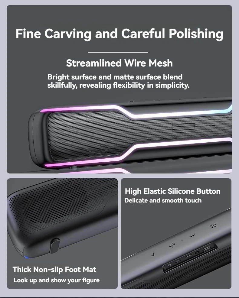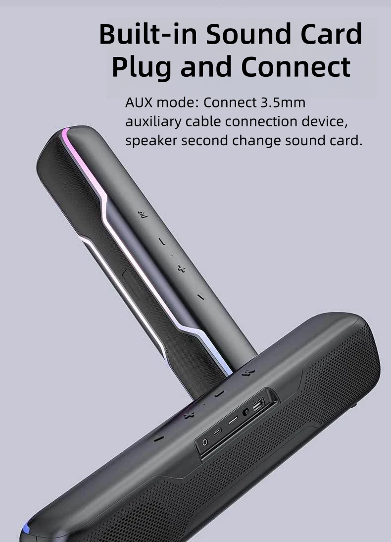 BT5.3 RGB Pro Game Computer Soundbar PC Speaker with Dynamic Lighting Audio-Light Sync Battery and USB Powered and Aux 3.5 Jack